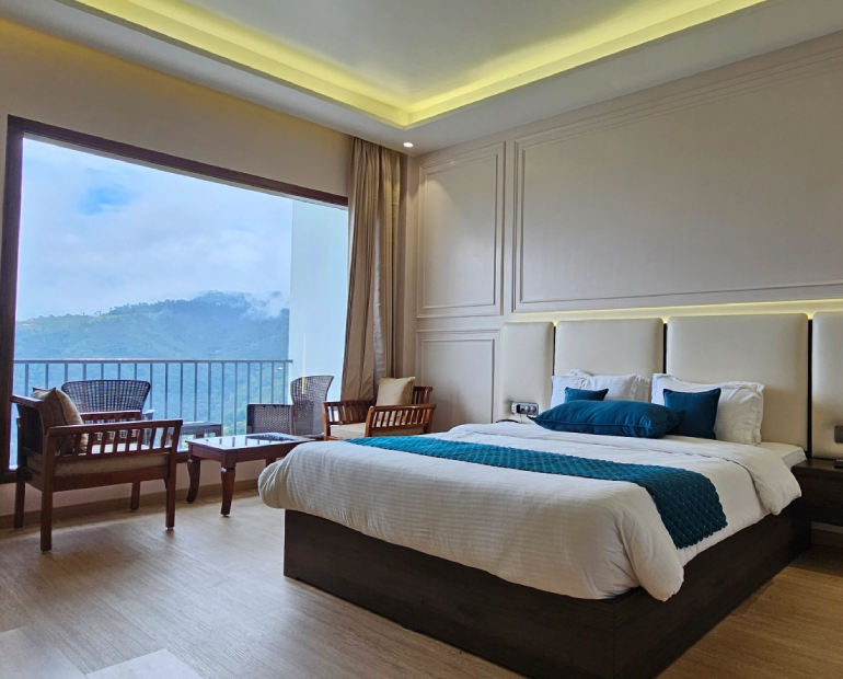 Every suite is designed to bring the outdoors in — with large windows, natural light, cozy interiors, and breathtaking balcony views. Comfort meets elegance in every corner.