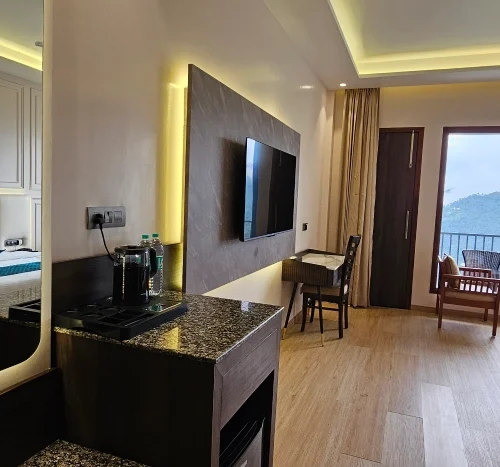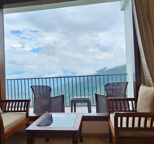 We offer Deluxe Valley View Rooms, Premium Forest Suites, Family Suites, and our signature Sky Deck Suite. Each room offers scenic views, cozy interiors, and modern amenities designed for complete comfort.