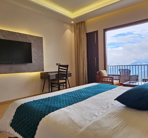 Every suite is designed to bring the outdoors in β with large windows, natural light, cozy interiors, and breathtaking balcony views. Comfort meets elegance in every corner.